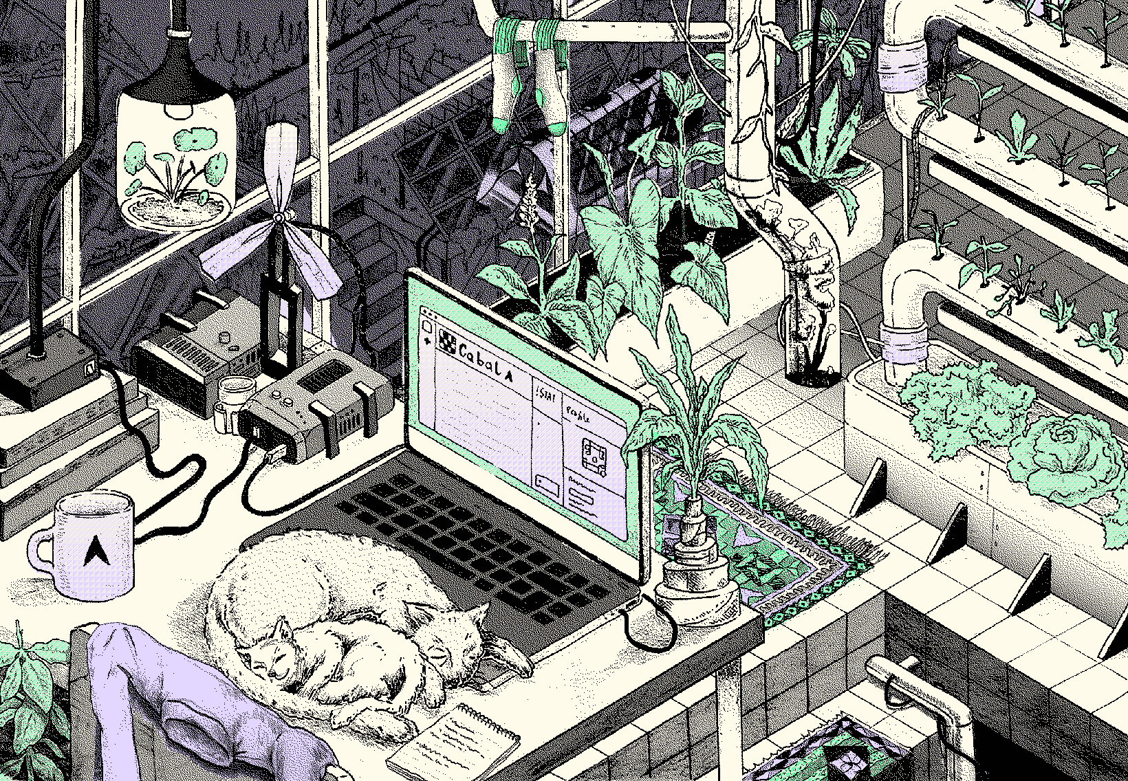 Decentralised, open-source chat app Cabal asked al&mo to help them zhuzh up their website. We developed a new UI to improve usability and accessibility, and created custom illustrations representing the team’s vision of a utopian digital future.